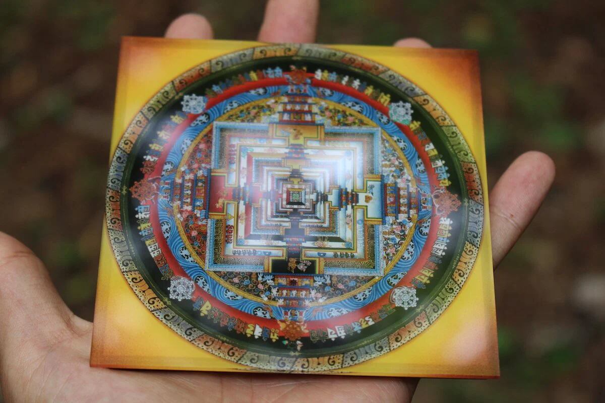 ホンモノの肉筆仏画一点もの曼荼羅 マンダラはとても良いものということは分かるけど、初めて購入するには価格的にハードルが高い、また携帯用として手軽に持ち運べ、気軽に飾れる小さいものが欲しいなどのお客様のご要望にお答えするために、新商品としてこちらの「カーラチャクラ マンダラ アクリル mini」を製作しました!